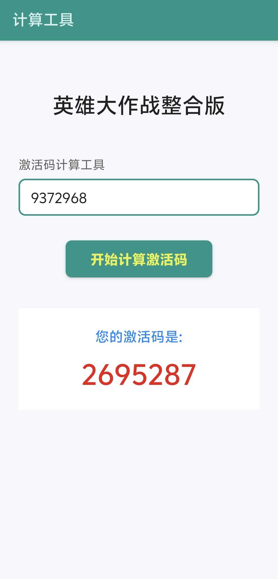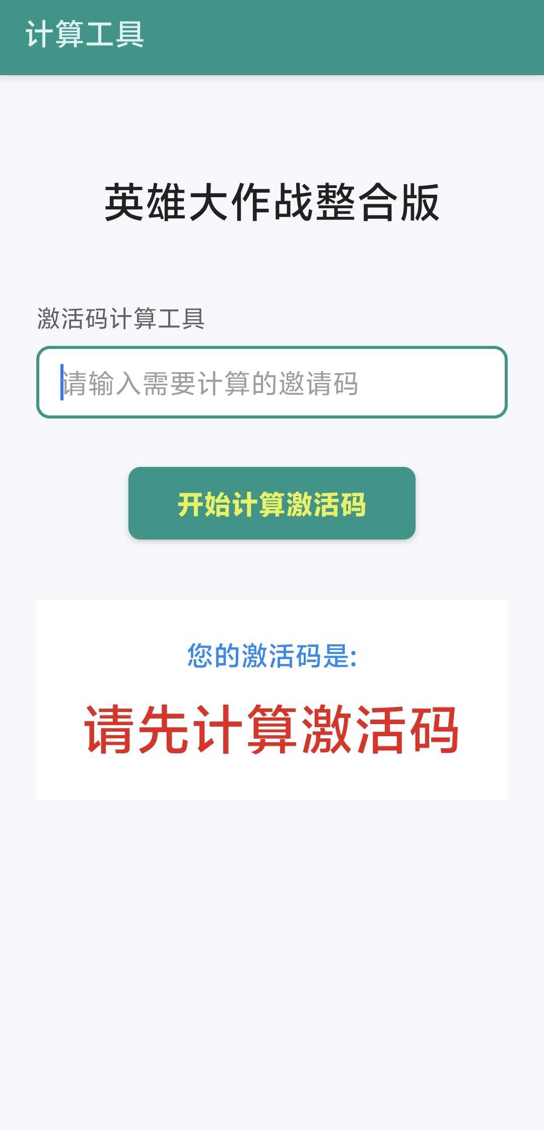 英雄大作战整合版2.6激活码计算工具。把自己的邀请码输入进去,点开始计算就可以得到自己的激活码