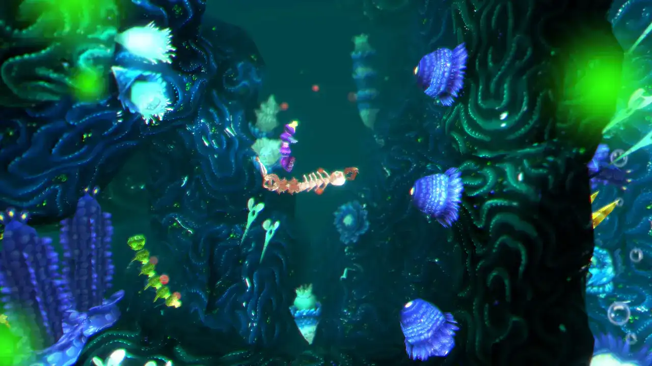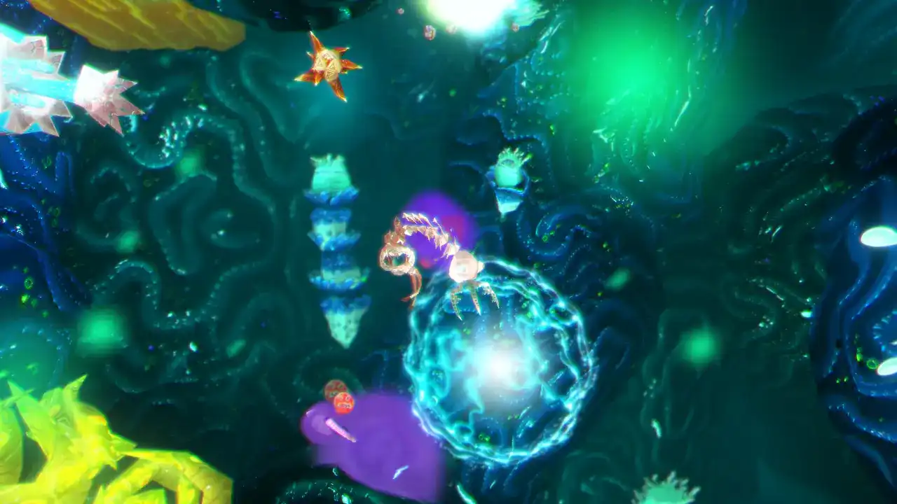 《深入巨兽腹中》是一款动作冒险游戏,你将扮演海虫斯普鲁什,踏上拯救被巨型海怪吞噬的孩子们的旅程。在巨兽腹中形形**的独特场景中,你必须巧妙利用这特殊环境的特性来解开重重谜题。 以创意十足的方式战胜由 DNA 构成的敌人:吞食不同类型的 DNA 会改变其他生物对你的态度,并赋予你不同的特殊能力。 为每个区域找到最佳策略!