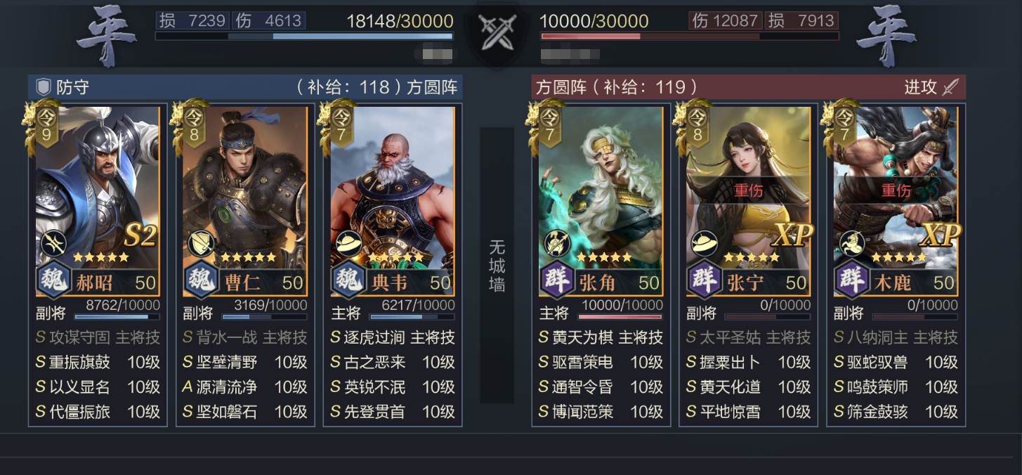 虽然双方战损看似相当,但实际上我方仍然具备战斗力,而敌方大概率重伤1~2名敌人,对于这套不占用主流核心技能和武将的阵容而言,实用性和收益都非常出色。