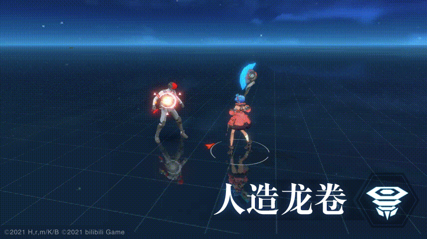 缠挥动武器让四周的空气凝结形成冰龙卷,并将四周的目标卷入空中造成物理攻击的冰冻伤害;蓄力后会追加攻击。