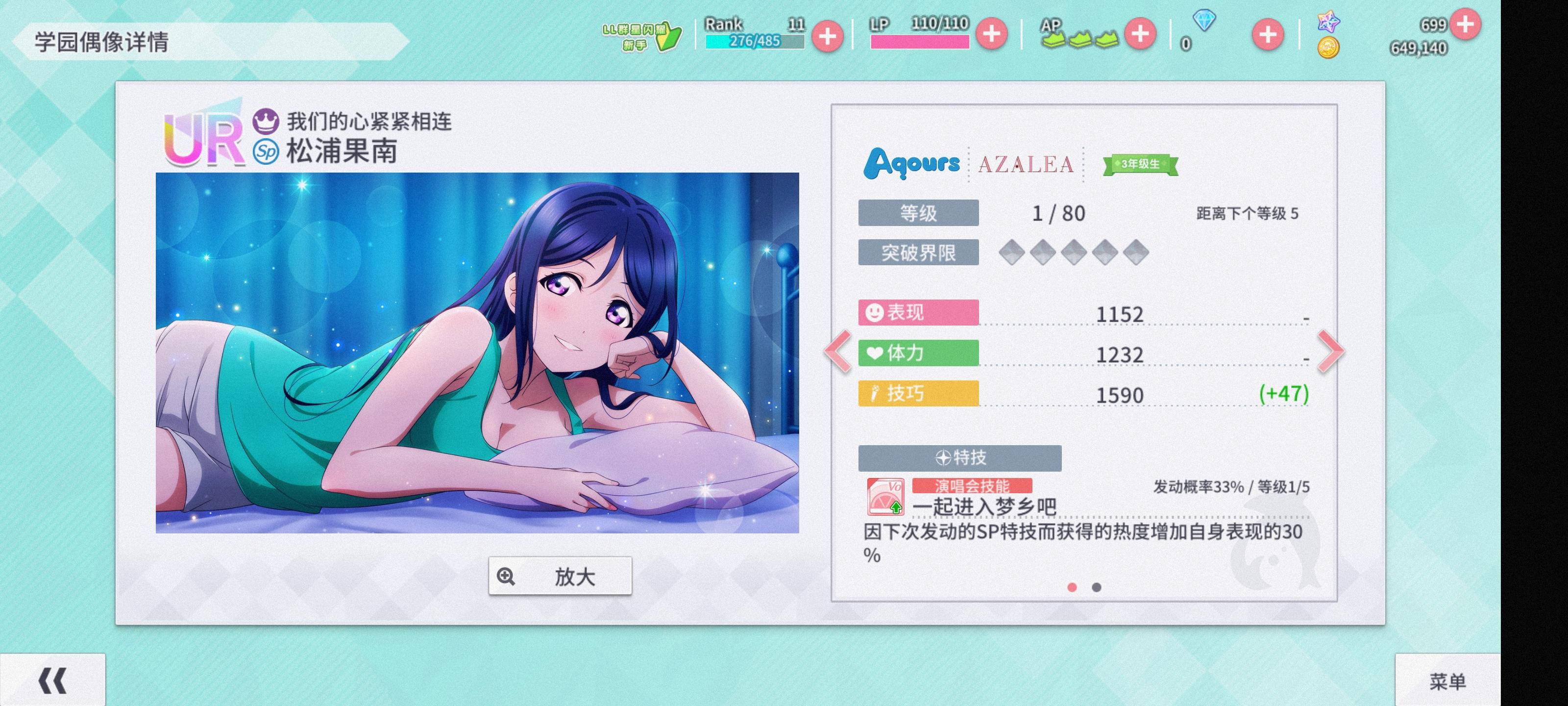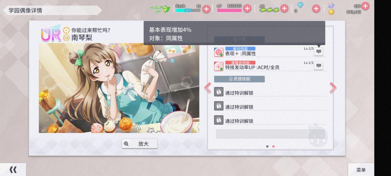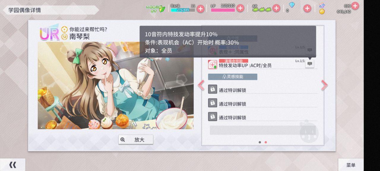 演唱会技能就比较鸡肋了,歌曲开始时获得一定sp能量。