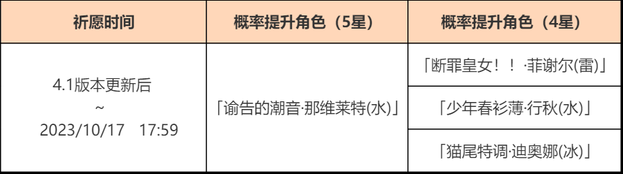 ●活动期间,限定5星角色「谕告的潮音·那维莱特(水)」的祈愿获取概率将大幅提升!