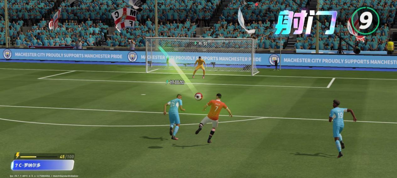 如果中场球员带有“精确引导”传球技能,那会更容易使前锋直接触发“空中打击”技能从而实现凌空抽射。