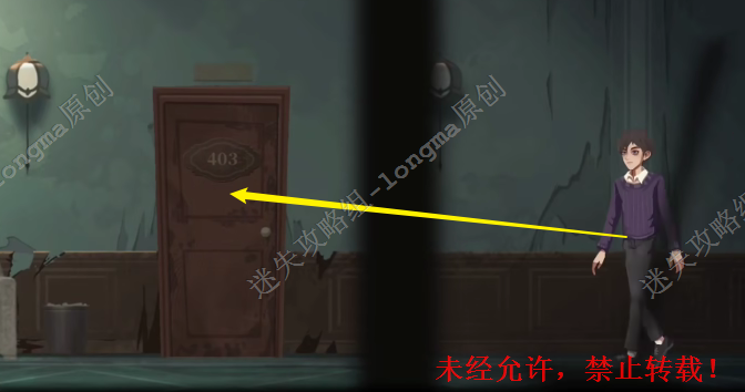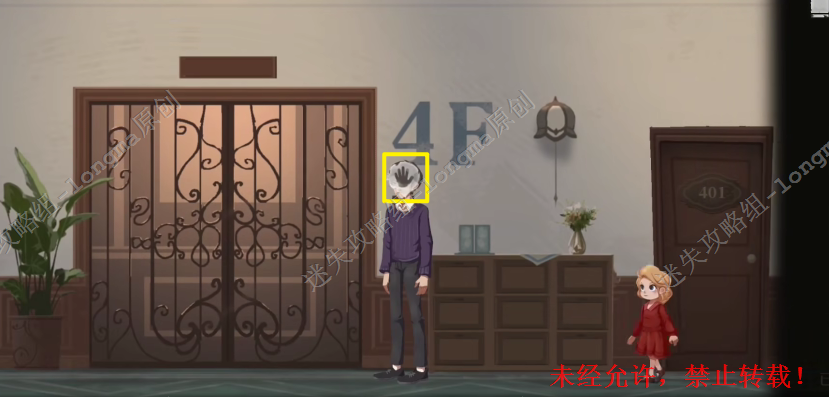 18.剧情后跟随出现的人影,向右来到电梯口,乘坐电梯来到四层,向左进入403房间。