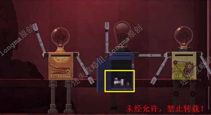7.返回三个小机器人处,在中间机器人的肚子中获得【放大机胶片】。
