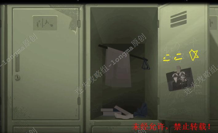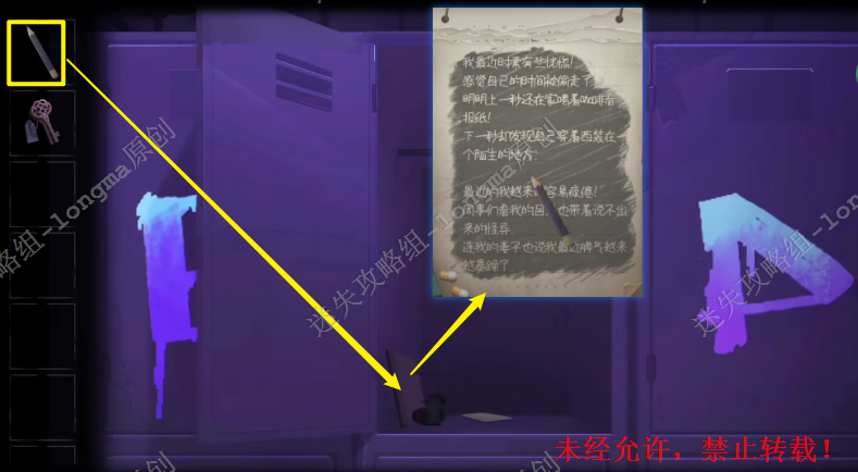 8.向左前进,在衣架上的制服口袋中获得【铅笔】,使用铅笔在柜子中的笔记本上描黑。