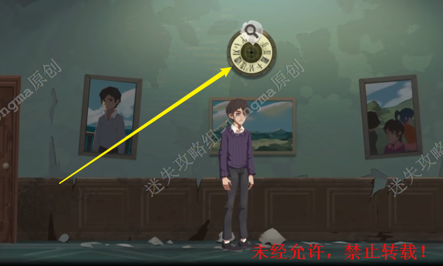 9.从右边的门出去,走廊墙上的时钟上获得【时针和分针】。