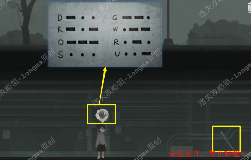 4.向右继续走,观察墙上的摩斯密码表,并拾取地上的【铁棍】。