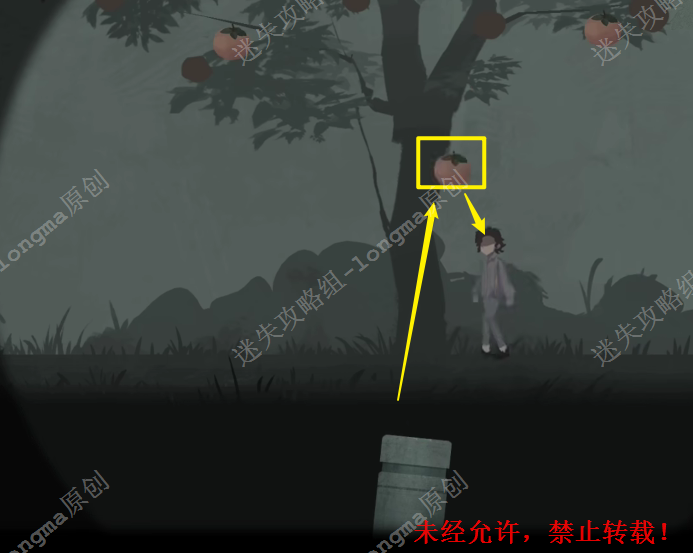 3.在洞口使用【玩具枪】,观察上面的人行动轨迹,击落柿子使其刚好掉在其头上。