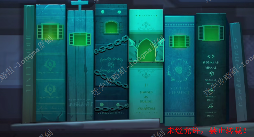17.查看右边书,根据烛台符号连线得到的图案,找到对应的字母依次填在书上(书上的字母顺序有箭头指示),打开书记住代号和图案。