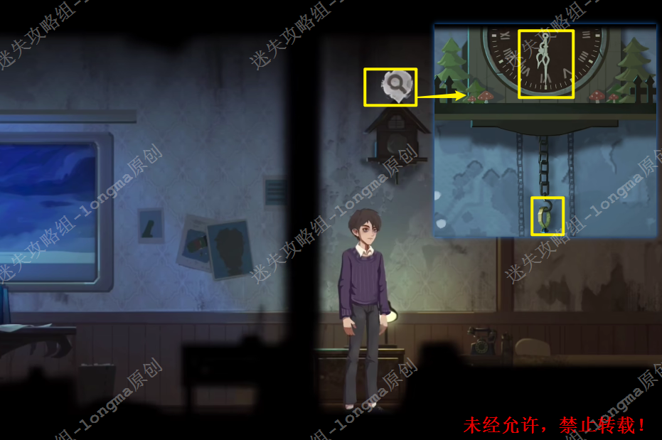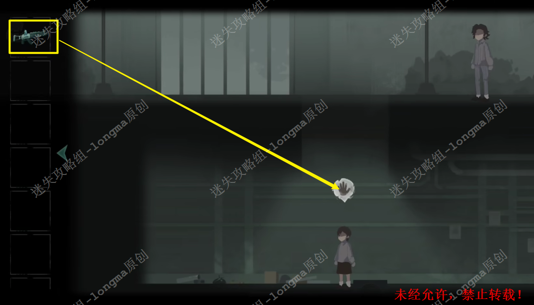 2.向右直行,进入后院,掉入坑内,向左拾取【玩具枪】。