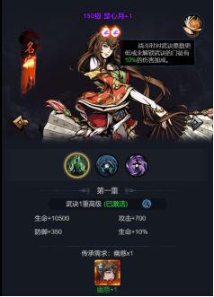 第一重初级:指定放置门徒幽慈*1(放置门徒必须达到突破一重才可激活。)