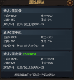 第一重中级:(放置门徒达到突破三重即可激活。)