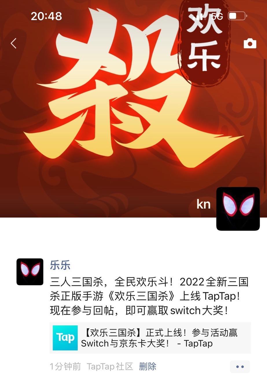 三人三国杀,全民欢乐斗!2022全新三国杀正版手游《欢乐三国杀》上线TapTap!现在参与回帖,即可赢取switch大奖!