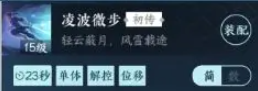 凌波微步位移技能,可以用来躲避技能伤害和解除控制,当敌人接近自己时,用来拉开自己和敌人的距离。