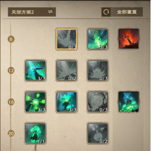 核心天赋:灵魂之力、欣欣向荣、强化守护魂火。对BOSS主目标释放灵魂链接后再挂上守护魂火,加上生魂绽放可以造成大量群疗。欣欣向荣提供的生机点可以加快曼陀罗的获取速度。
