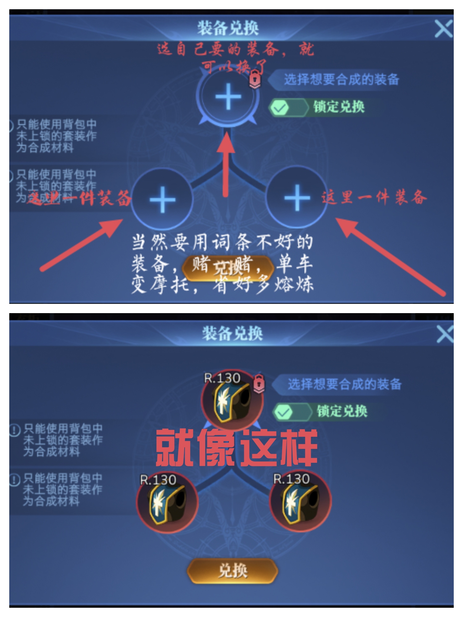 我看到很多人说熔炼不够,这里可以将抽出来的,词条不好的装备进行二合一,省很多熔炼,一次100抽,能出几件套装?这么一想是不是省出好多哈哈哈