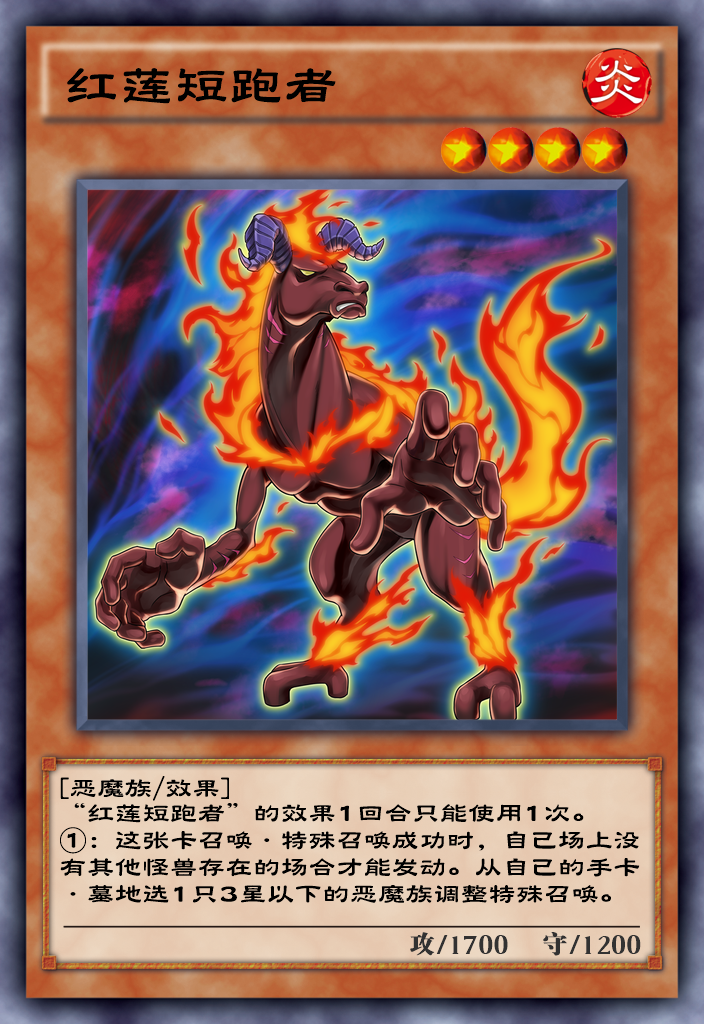 消耗1手牌,堆墓深红共鸣者+1恶魔族,拿红莲短跑者。通召红莲短跑者即可1卡启动。
