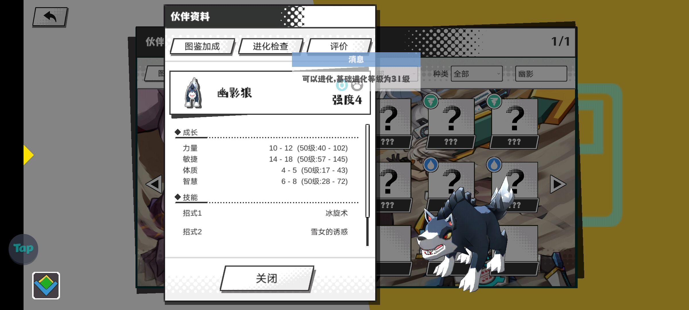 而像我的那只满级并且每一次升级都有等待弹窗依然没有进化的宠物,便是所谓资质不够,像这些宠物,即便你满级了再去打马赛克怪物也不会弹窗