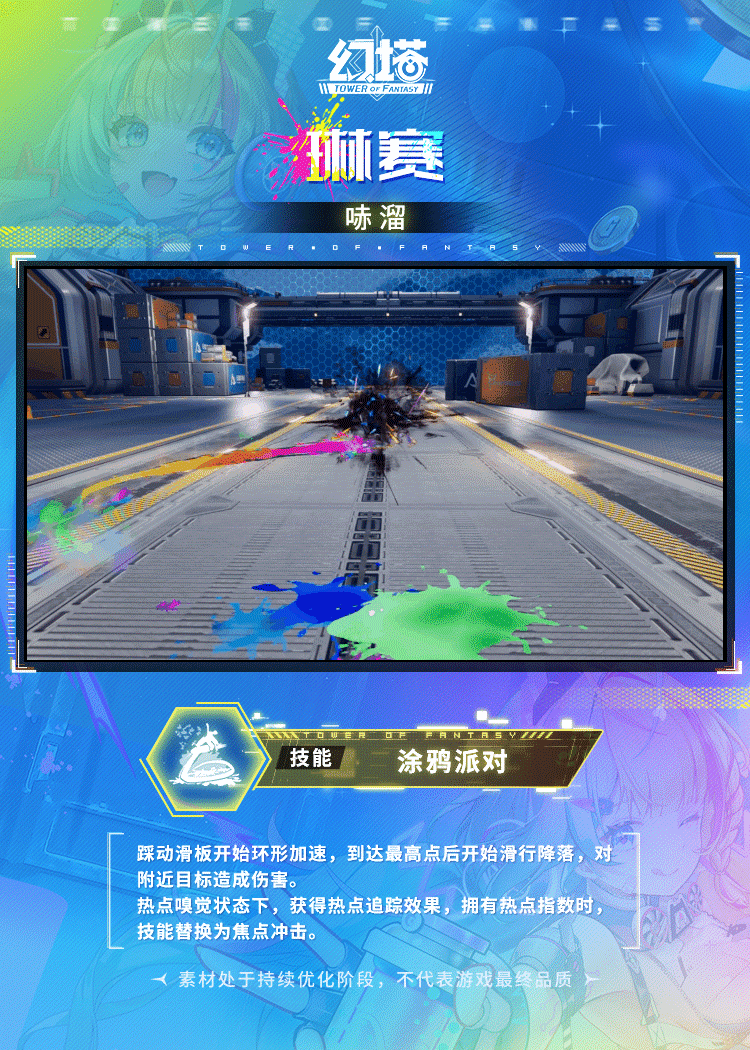 踩动滑板开始环形加速,到达最高点后开始滑行降落,对附近目标造成伤害。