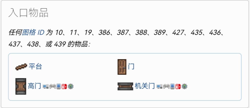 注:你可以把物块换成平台,意思就是你可以建造一个全是由平台(下面必须有一个实体物块)组成的房间,很省材料的哦。
