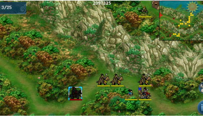 提示:窦建德贴着地图最上一行走,苏烈紧跟着窦建德走,徐元朗跟随但是会主动攻击附近