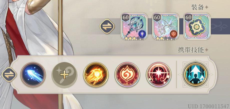 无塔埃尔时,把【领袖光环】换成【晶能亲和】勉强能用。(损太多输出,不如带领袖光环打平A。不过【耀火净涤】有风筝腿短近战的特殊作用)