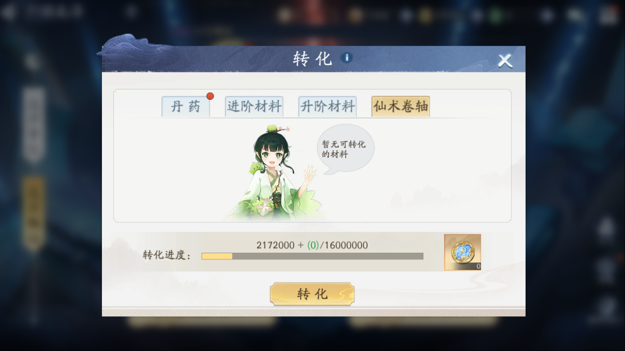新增转换材料【仙术卷轴】,开启条件为仙源等级达到2000级。