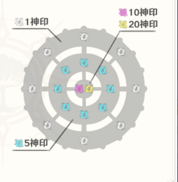 战斗地图是一个三层的同心圆,外层是1神印区域,中层是5神印区域,内层是10神印和20神印区域。显然,越外层神印越少,战斗强度也低;越往里,神印越多,竞争也更激烈。冒险者们要根据个人实力,选择合适的战斗策略。
