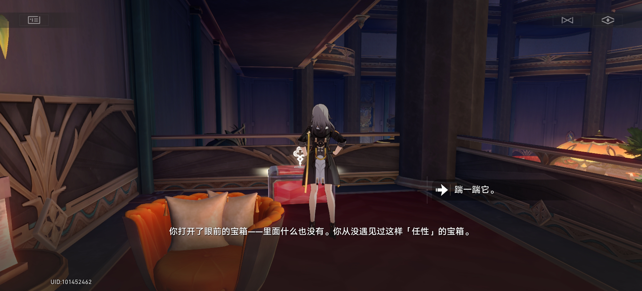 然后到中间去找人对话,把上面那个蓝衣服人弄走,然后就能拿宝箱了