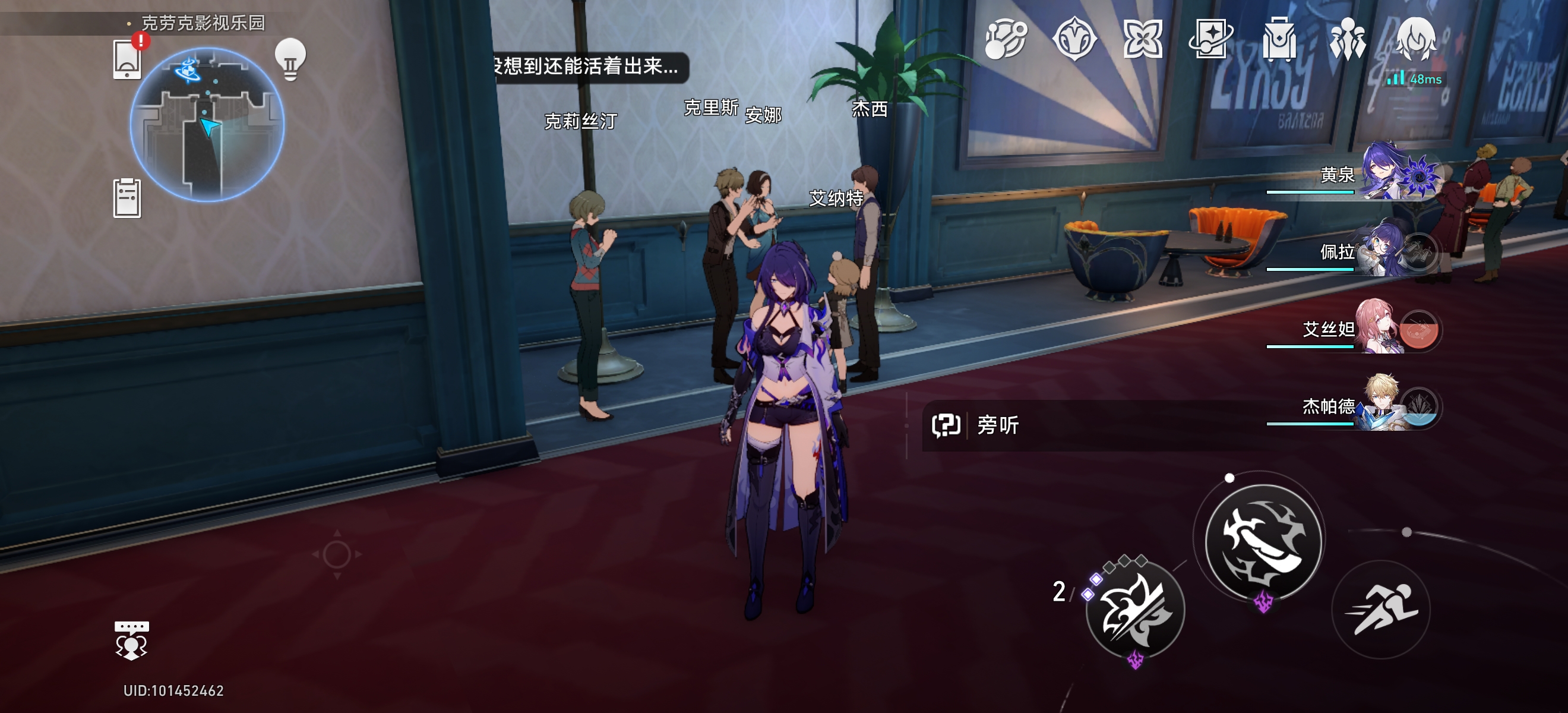 5.星槎海中枢然后进去司辰宫。左前方找人后的调查点。就这个蓝衣服的。调查完对完话出去刷地图再回来,就如下图,旁边会有个宝箱,继续对话