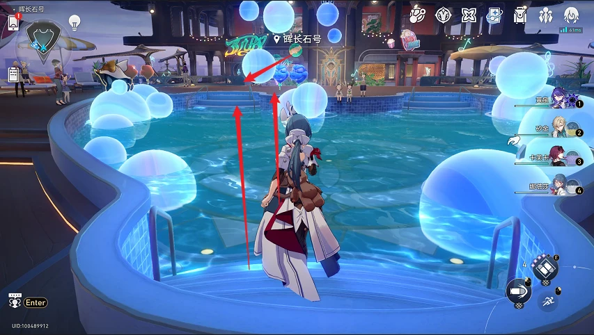 我们先传送到匹诺康尼—晖长石号下方泳池的锚点处