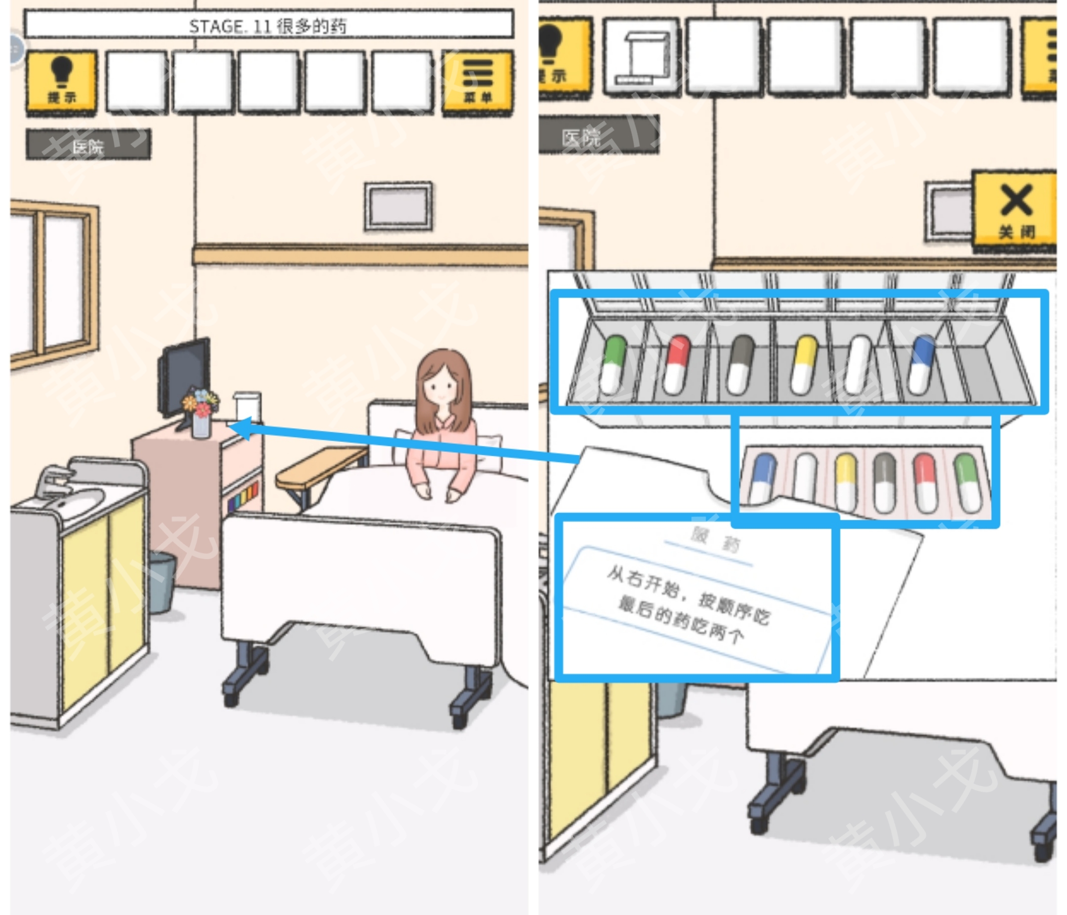1.点击电脑桌,获得【药】,根据上面的说明将药按顺序放进药盒(从右开始,按顺序吃,最后的药吃两个)