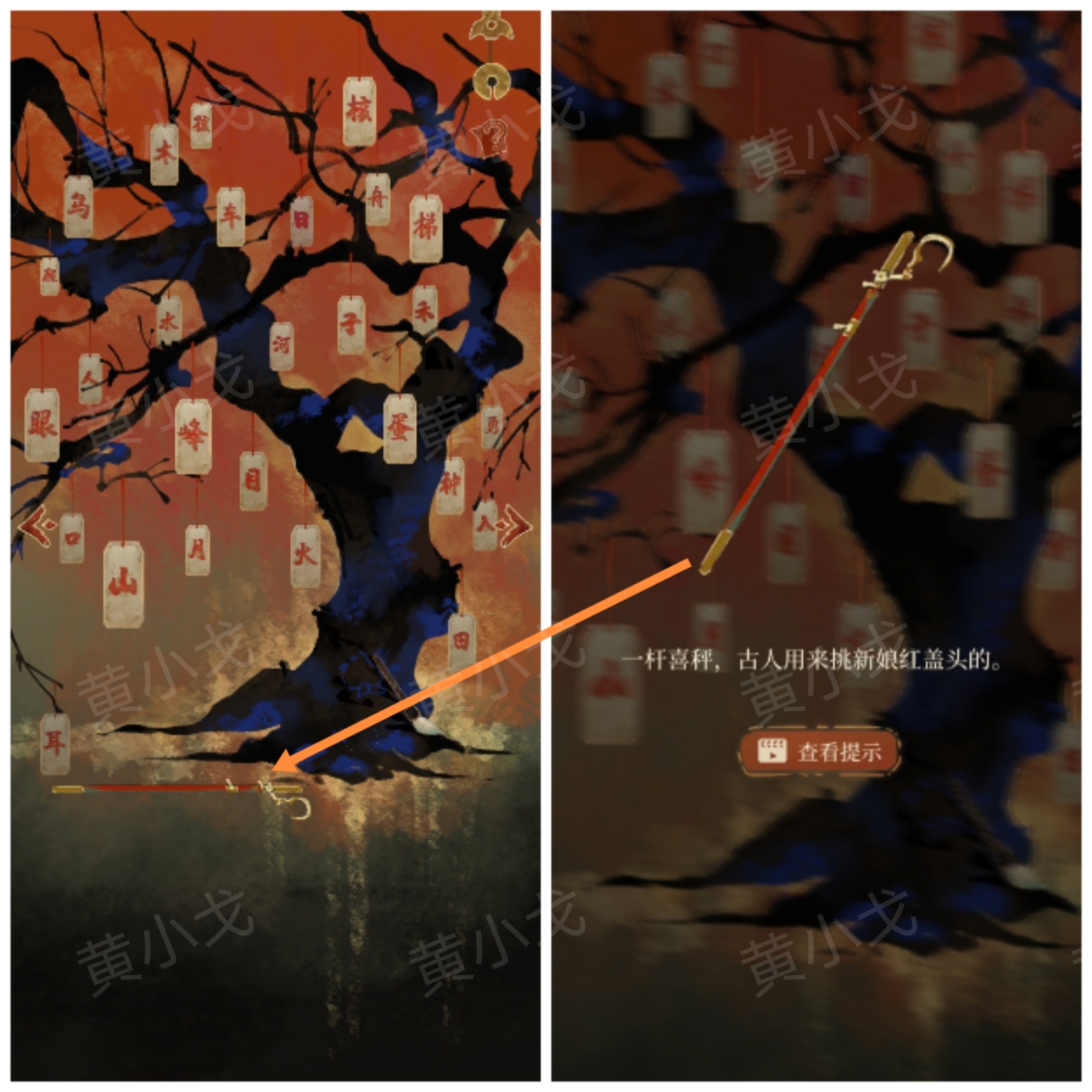 17.用【喜称】钩树上的汉字块,要和瀑布上的文字匹配