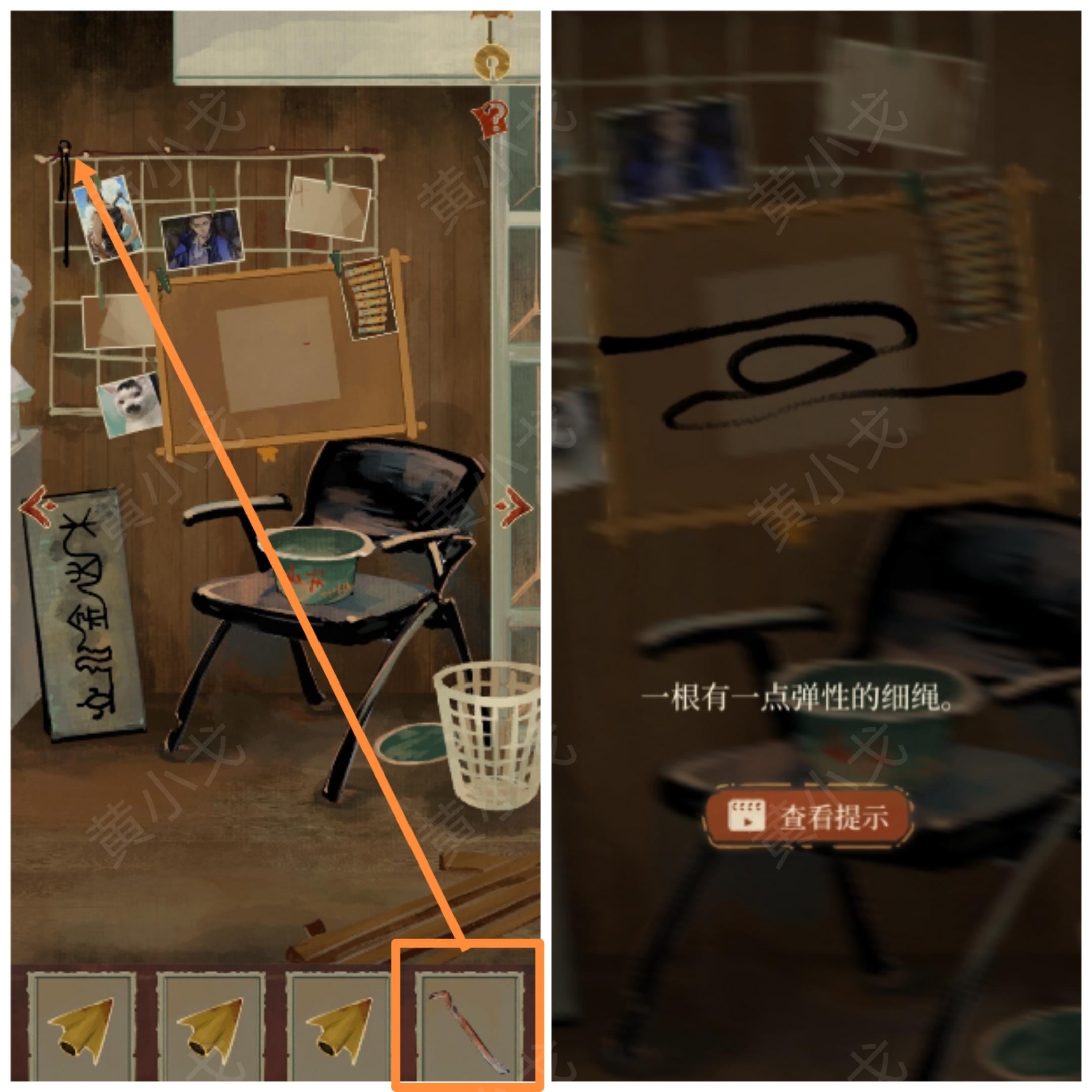 16.用【起钉器】拔掉照片墙上的钉子,获得【细绳】
