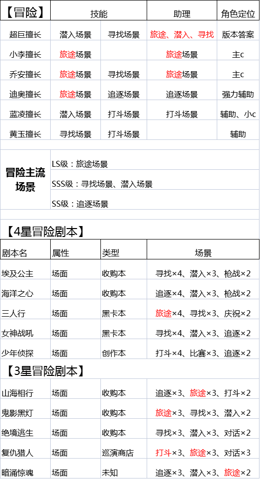 二.冒险巨星定位、冒险场景优先级、冒险剧本场景概况