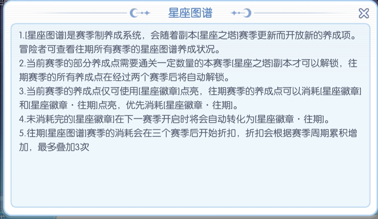 星座徽章用于点亮星座图谱,星座图谱每月更新,全部点亮需消耗共计196个星座徽章。