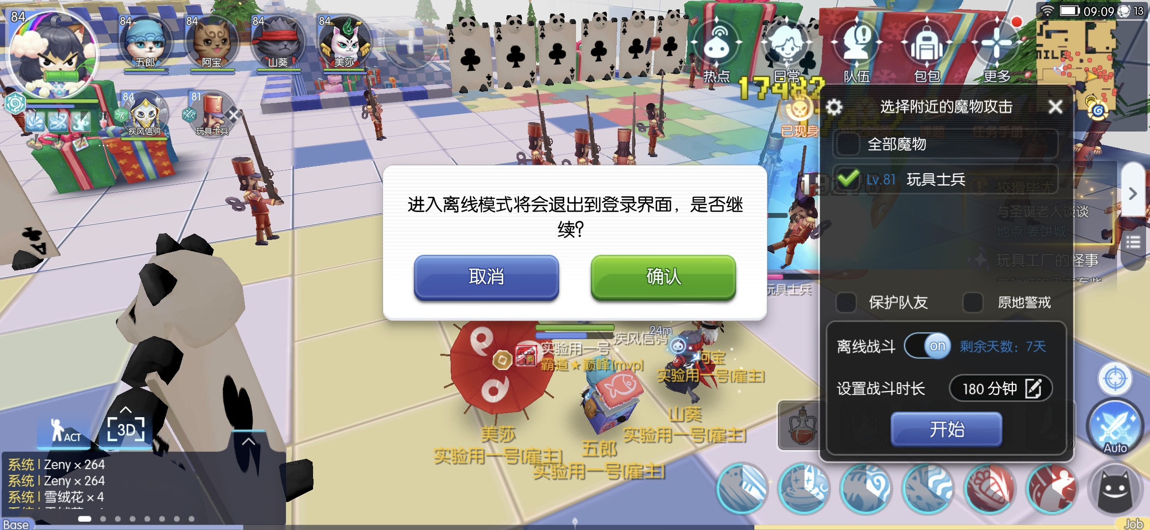 第四天签到会送一个7天挂机符,以前黄疲劳没得挂机。现在可以用挂机符把黄疲劳用掉,黄疲劳有150分钟,使用了挂机符后,在右下角自动战斗里面,有个离线挂机选项,勾选你要打的怪,就可以离线了,时长是可以设置的,他默认是绿色的,如果没绿色就会是0,然后你手动填时间就好了。