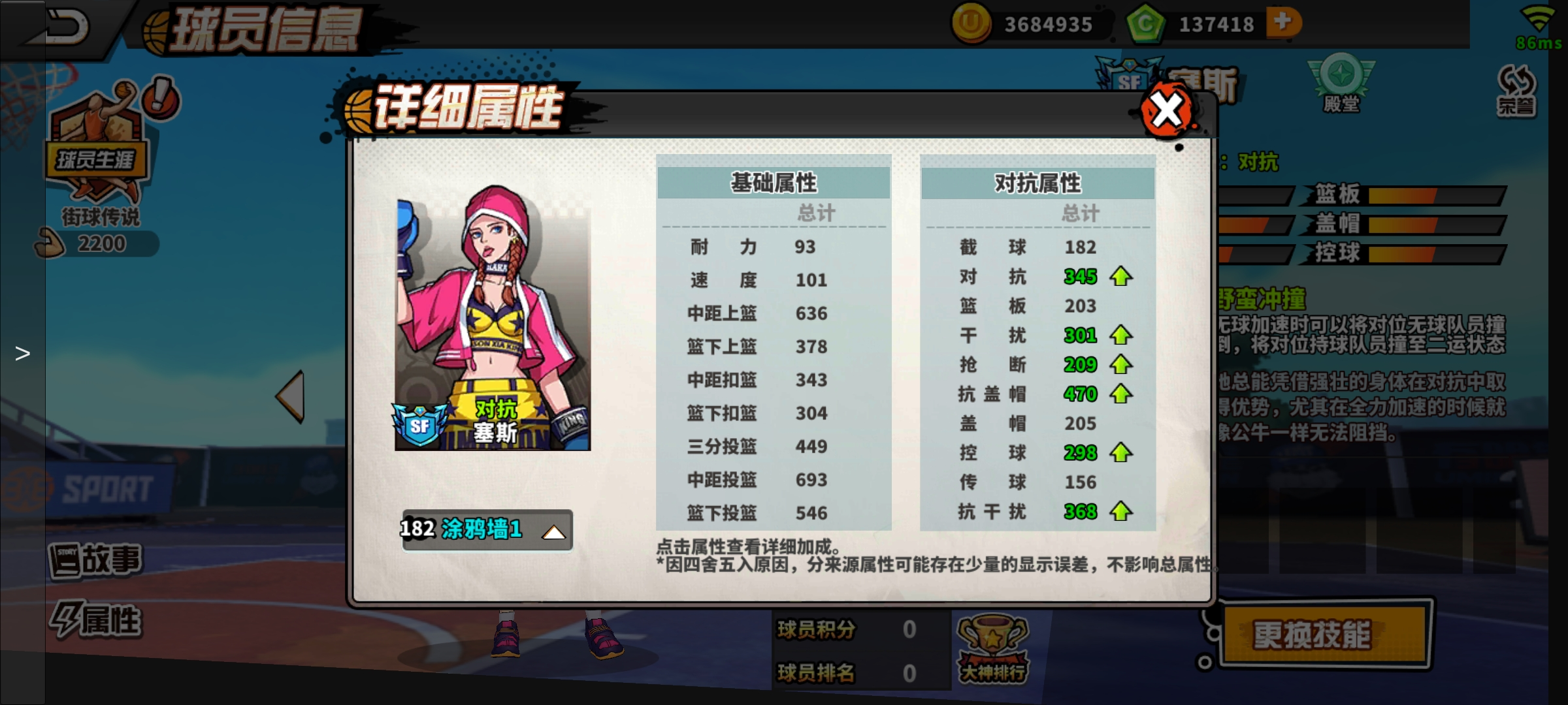 [进攻]强健体魄:强健体魄的能力的提升有助于赛斯在内线中的对抗能力,赛斯很需要对抗等级加成