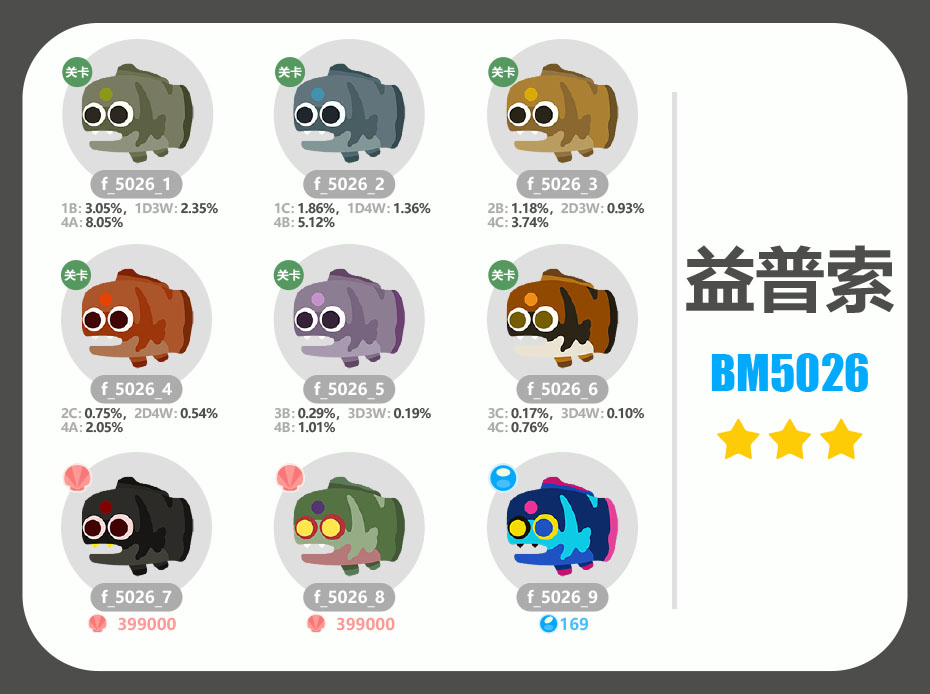 益普索是暴米族3星鱼,一共9种颜色,其中前6色出处在关卡,第7色第8色是贝壳,第9色是珍珠。活动时间为2025年1月15日至2025年2月1日。