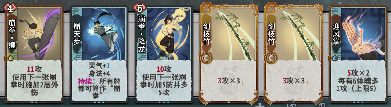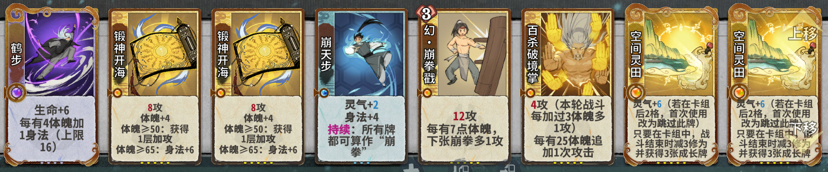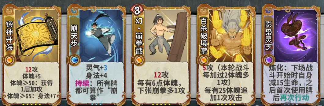 因为这里崩天是消耗卡,所以后置两张锻神即可在第五动打出第二次百杀。