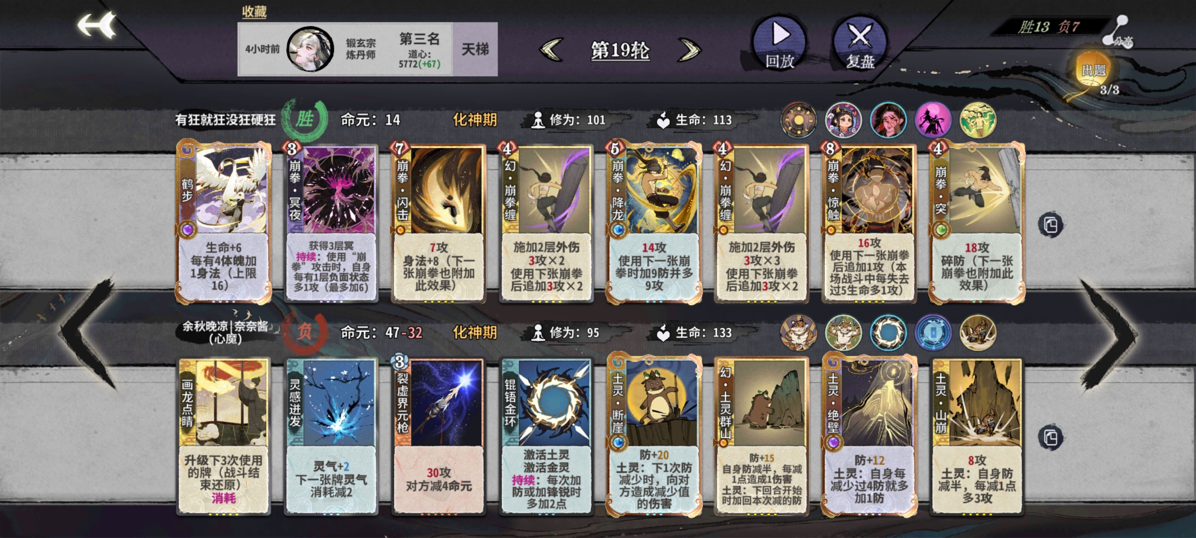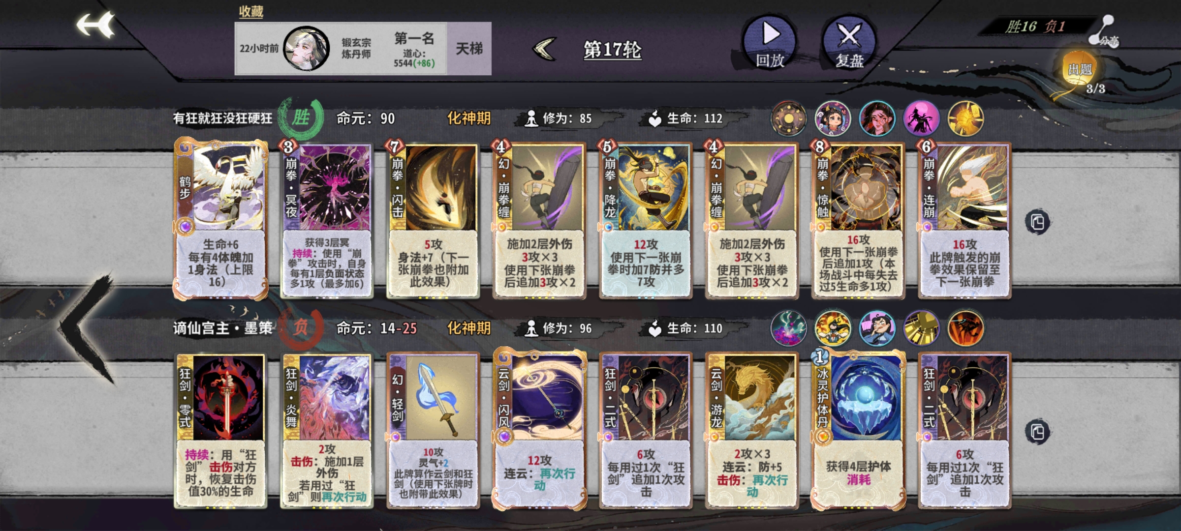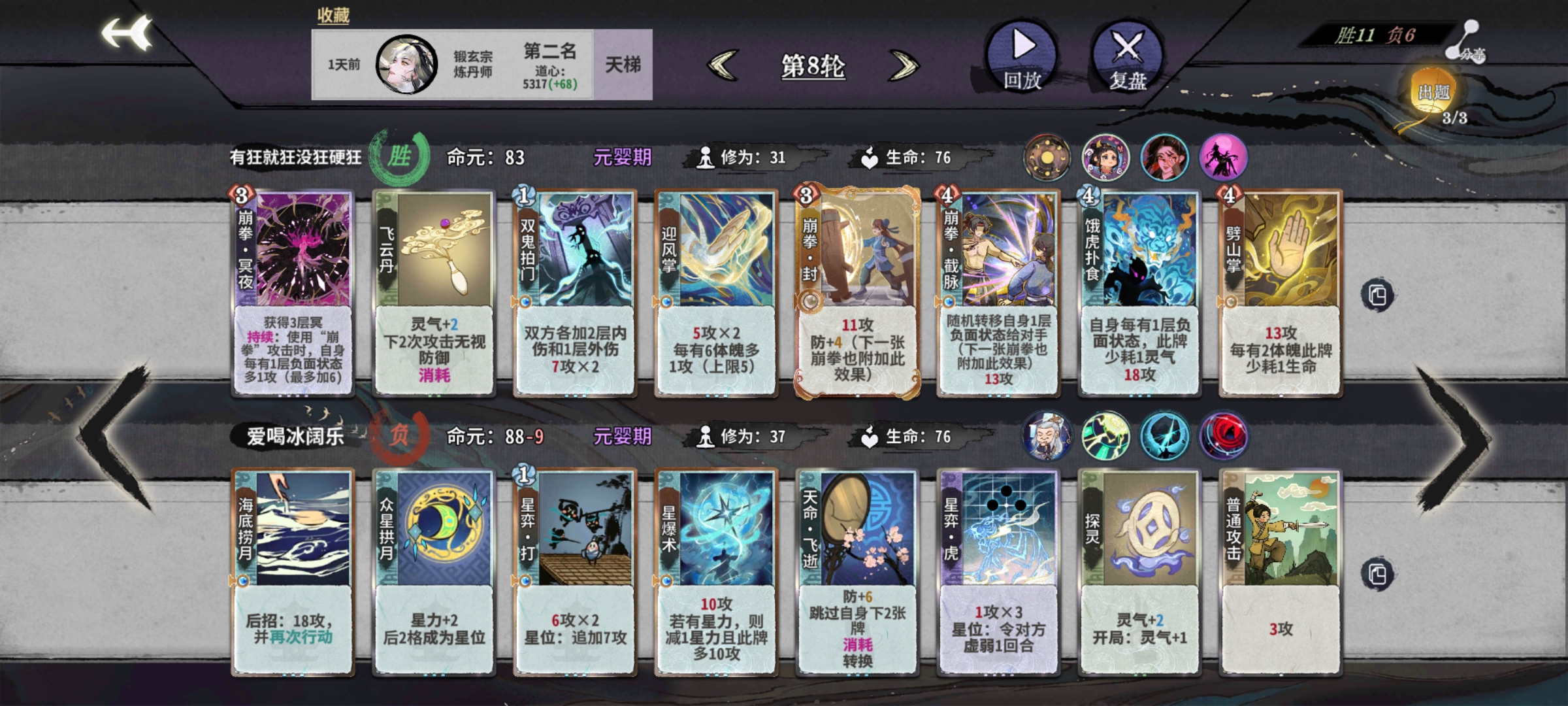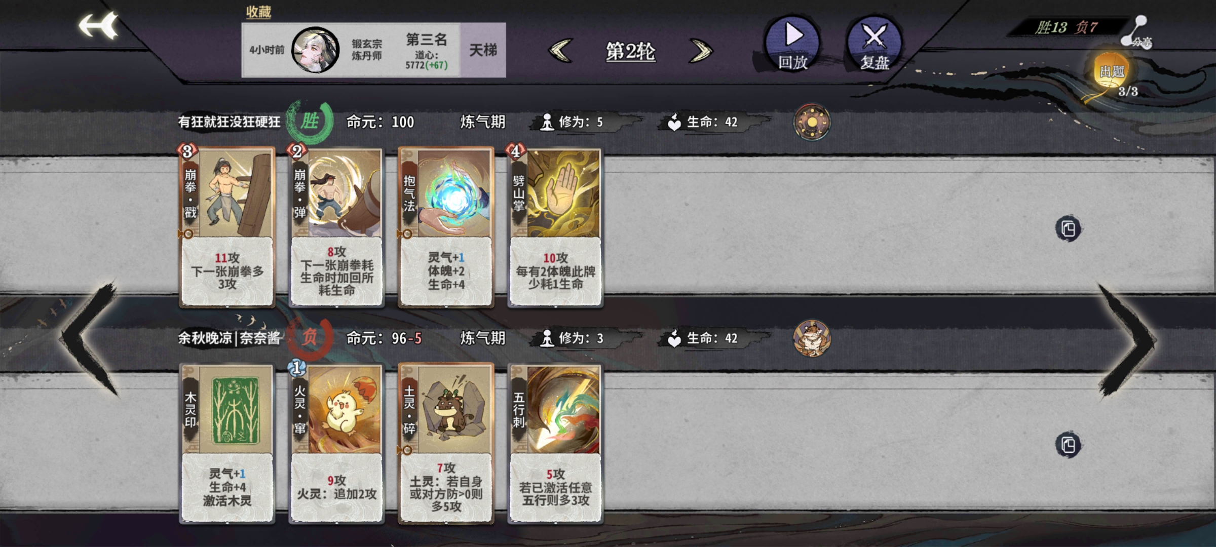 练气:d1-3轮,有三张崩拳、两张二级就可以停,三轮修为上本,极端一点来说,封都可以不扔等二级。