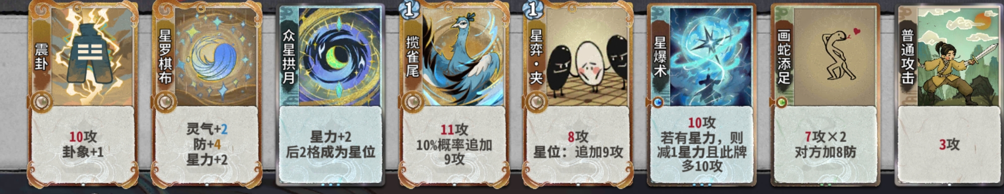 你可能就要问了:不是说没必要抢先吗,为什么金丹不要星爆,20点的数值不好吗。原因很简单,我们需要11轮上化神后可以d牌,而就是这微不足道的一修往往决定了老头能不能在死之前成型。当然如果没有修拿星爆保证前期战力也是OK的。