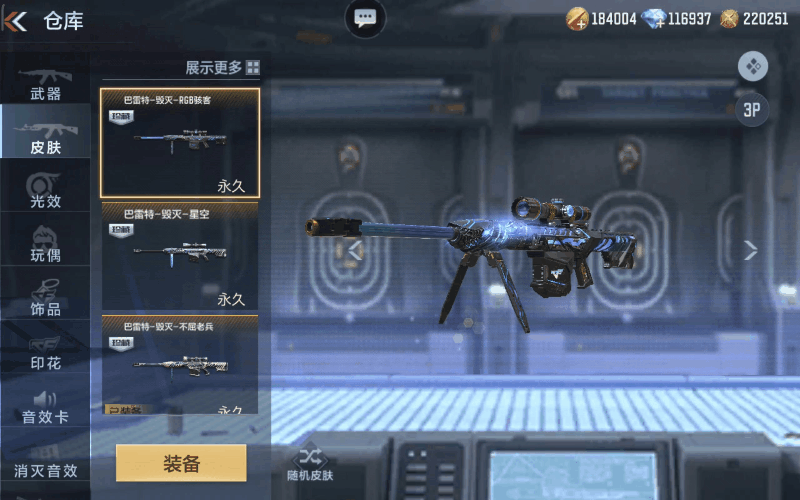 哈喽,各位CFer,大家好!谜城藏宝阁,全新系列的巴雷特-毁灭-RGB骇客也已开启兑换通道,相信大家的谜城币都已蓄势待发,准备兑换心仪的皮肤了吧?与此同时,往届大受好评的RGB骇客与不屈老兵皮肤也荣耀回归,再次与大家见面!接下来,就让我们共同沉醉于巴雷特-毁灭-RGB骇客那令人炫目的非凡魅力之中吧!