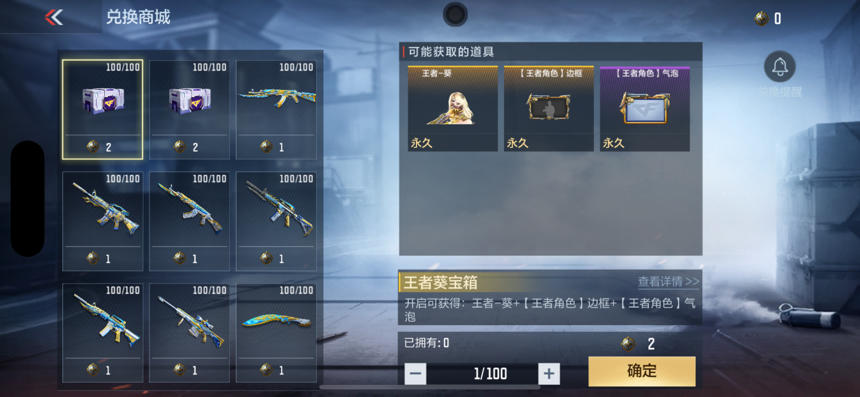 本期兑换商城首发王者葵宝箱以及AK47-雷霆王者-冰霜奇迹。返场王者零宝箱以及一系列王者武器的冰霜奇迹皮肤。冰霜奇迹皮肤需要使用一个鸣雷之石兑换,而王者角色宝箱则需要使用两个鸣雷之石兑换。