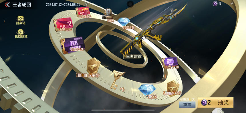 本期王者轮回的活动时间为7月12日至8月1日。活动期间,消耗轮回币可随机获得道具,一轮结束前,抽中奖励不会再获得。抽中的奖励会先进入暂存箱,可以选择发到仓库也可以选择将道具分解得到轮回币。抽完一轮后,可以获得一个鸣雷之石,使用两个鸣雷之石可在兑换商城中兑换冰霜奇迹皮肤以及王者角色宝箱。