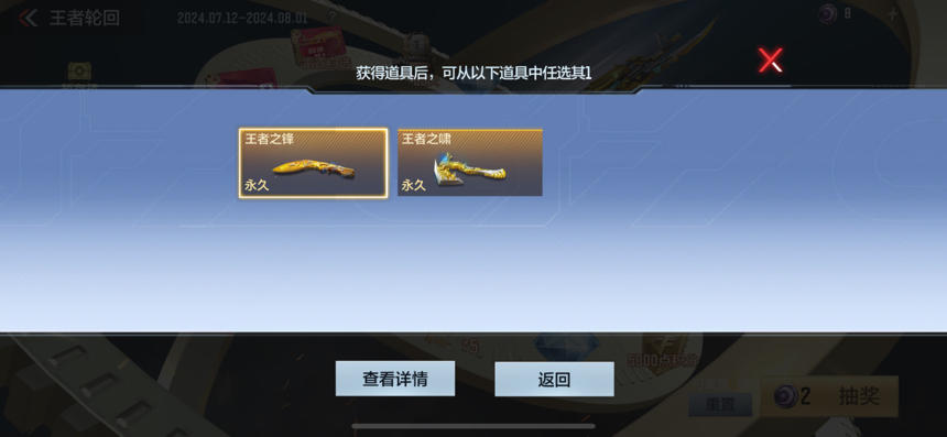 本次王者近战武器自选卡可自选王者之锋以及王者之啸,分解可的25轮回币。王者之锋作为经典王者近战武器,是心至尊、魄至尊、怒至尊的重要组成部分。其切枪特别是切狙击枪的手感受到众多CFer喜爱,如果你不知道该选择什么作为你的第一款王者近战,王者之锋就是你最好的选择。王者之啸则是影至尊、力至尊、戮至尊的重要组成,在刀战中也是数一数二的存在。