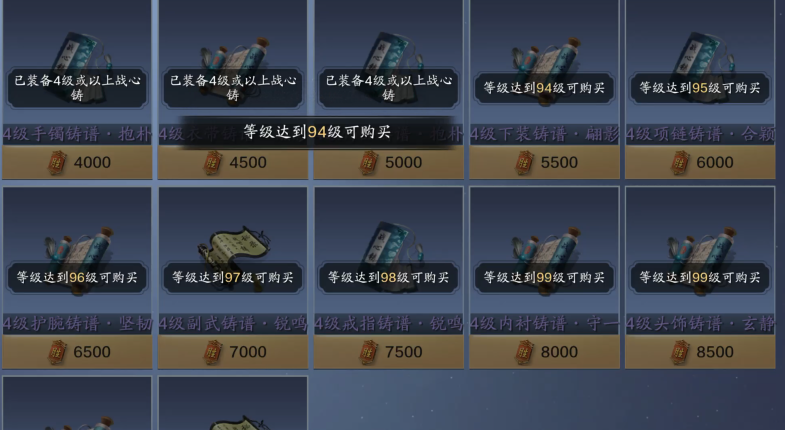 94级开放裤子的4级战心铸,总共需要5500胜负令请提前预留。