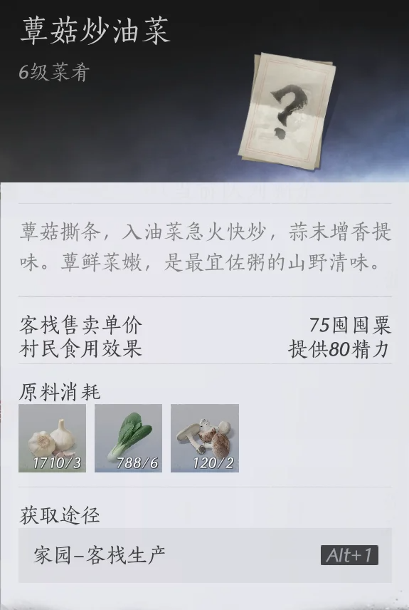 蔁菇:50-100左右 方便直接启动搓六级食物