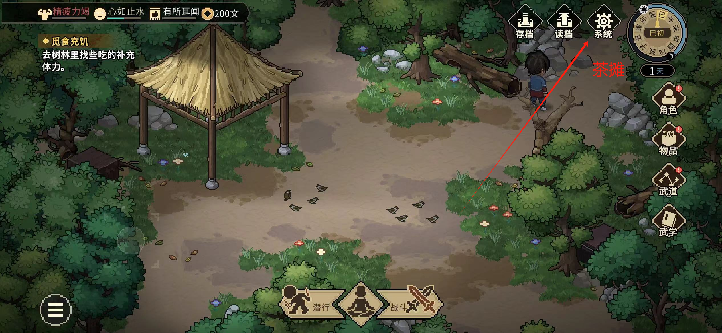 开局先把两个食物吃掉,去掉体力的DEBUFF,还能得个增益经验buff,及时存档,避免翻车